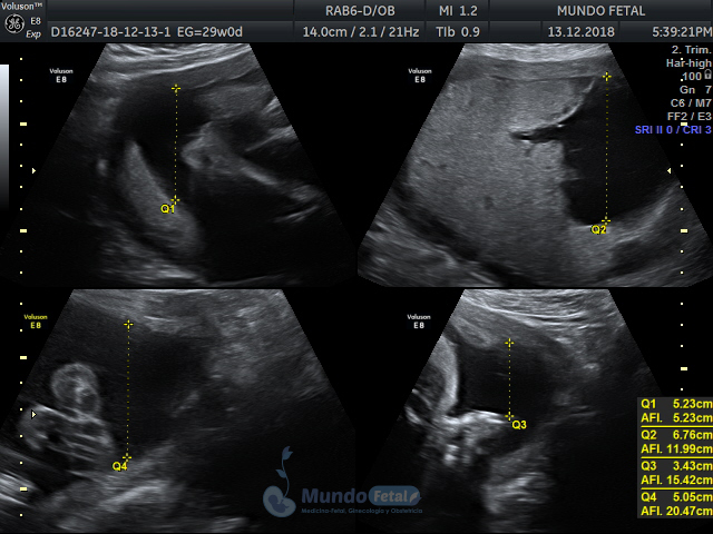 Mediante esta técnica ultrasonográfica, evaluamos en tiempo real al bebe y monitoreamos electrónicamente la frecuencia cardiaca fetal, vigilando los siguientes parámetros: